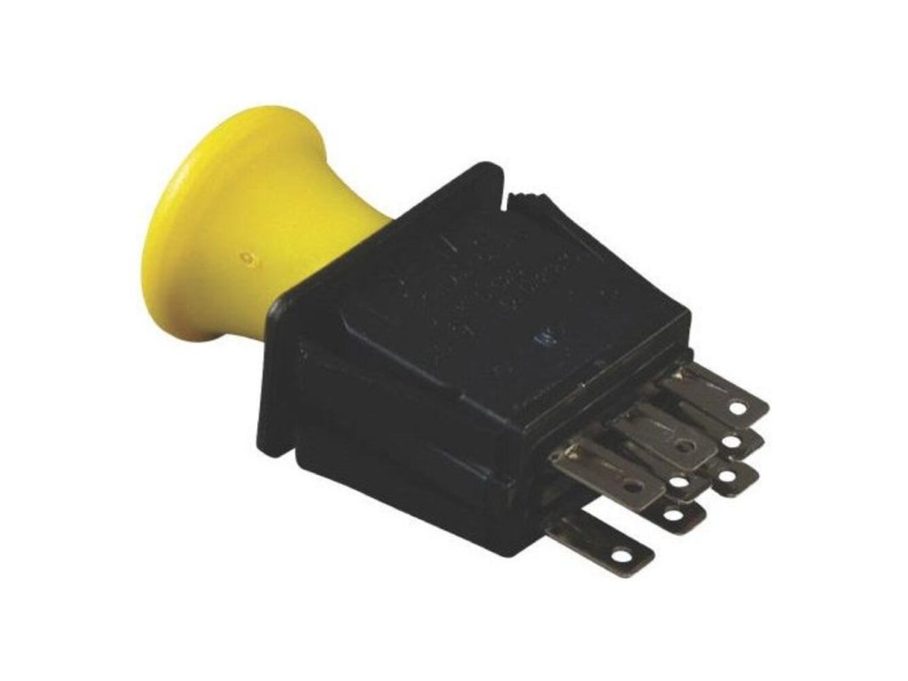 Tento spínač slúži na aktiváciu elektromagnetickej spojky, ktorá roztáča žacie nože. Vyznačuje sa ergonomickým hríbikom pre jednoduché vytiahnutie (zapnutie) a zatlačenie (vypnutie).