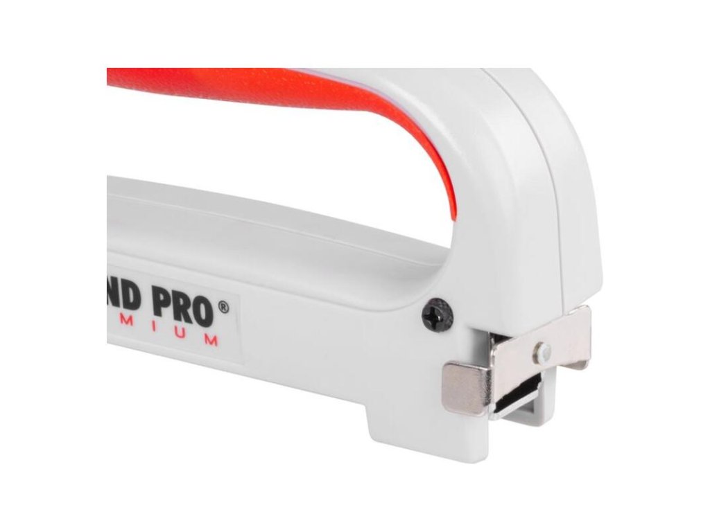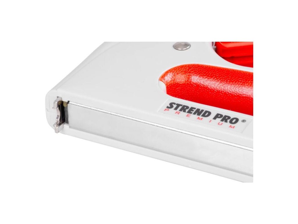 Ručná sponkovačka Strend Pro je určená na spájanie káblov pomocou sponiek. Je to robustný a pevný nástroj, s ktorým ľahko pripevníte káble, elektrické vodiče, šnúry či audiokáble. Vhodná pre spony typu A. Balenie obsahuje aj 50 ks sponiek na guľatý kábel:6-8 + 4-6 mm a 50 ks sponiek na plochý kábel: 4,5-6,3 + 2,5-4 mm.