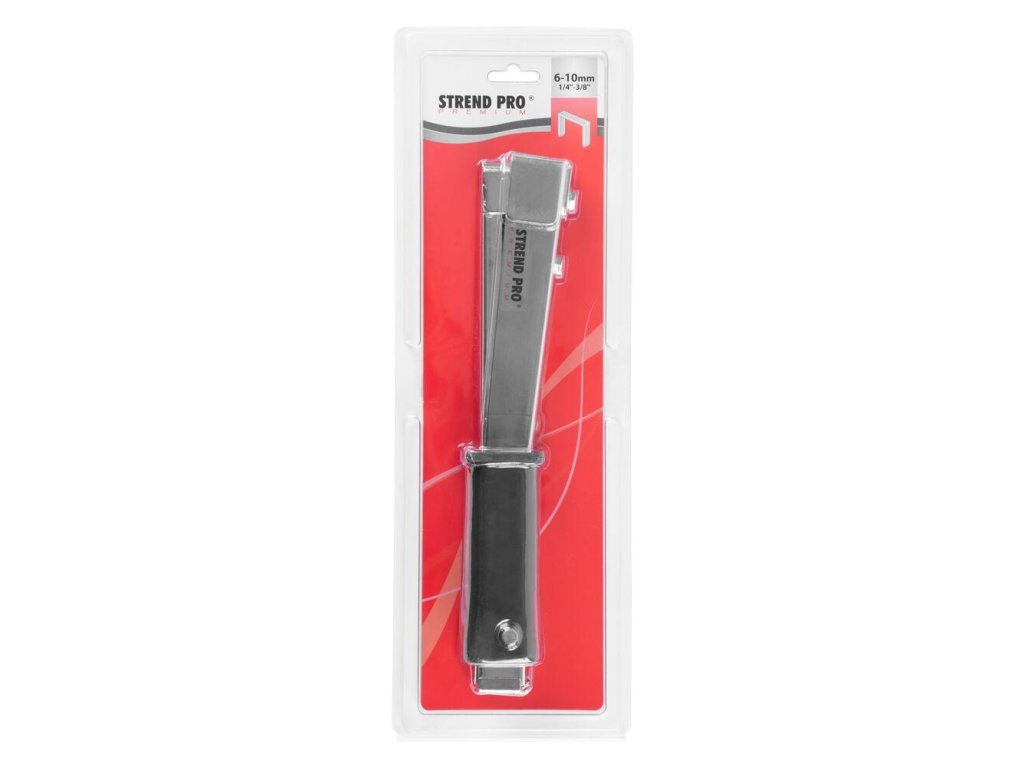 Ručná kladivová sponkovačka Strend Pro Premium je určená na spájanie materiálov pomocou sponiek. Je to pevný nástroj, s ktorým ľahko pripevnite rôzne materiály ako napríklad látky, čalúnenie, kartóny, rámy a pod. Rúčka absorbuje nárazy a chráni ruku. Vhodná pre spony typu C 6-10 mm.