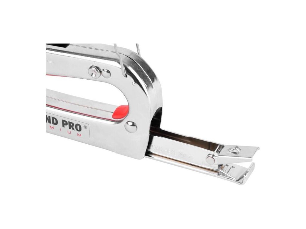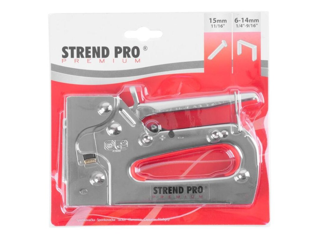 Ručná sponkovačka Strend Pro Premium je určená na spájanie materiálov pomocou sponiek. Je to robustný a pevný nástroj, s ktorým ľahko pripevnite rôzne materiály ako napríklad látky, čalúnenie, kartóny, rámy a pod. Vhodná pre spony typu B klinec 15 mm, C 6-14 mm.