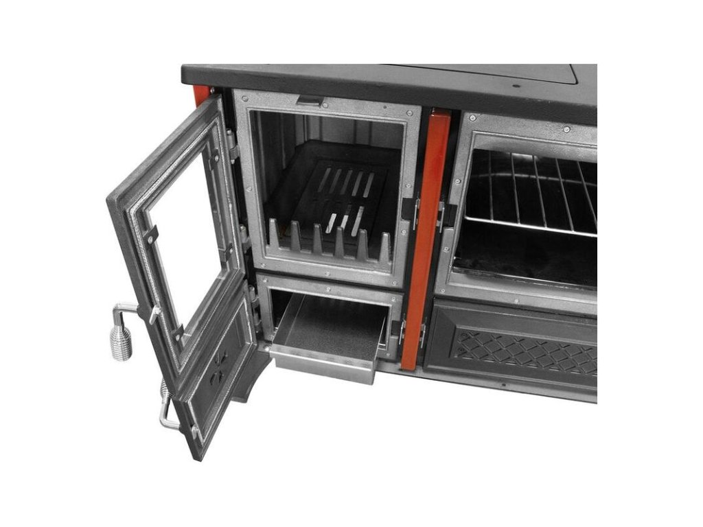 má jednoduchú obsluhu a úspornú prevádzku. Sporák disponuje varnými platňami, regulátorom prívodu vzduchu a prúdenia tepla, praktickými dvierkami ohniska a dvierkami rúry na pečenie. Varné platne a ohnisko sú vyrobené z liatiny. Praktická rúra na pečenie má dostatočnú šírku, a to 40 cm a na dvierkach sa nachádza praktický teplomer. Vyberateľný rošt v nej môžete vložiť na spodnú a strednú pozíciu. V sporáku sa tiež nachádza nádoba na popolník.