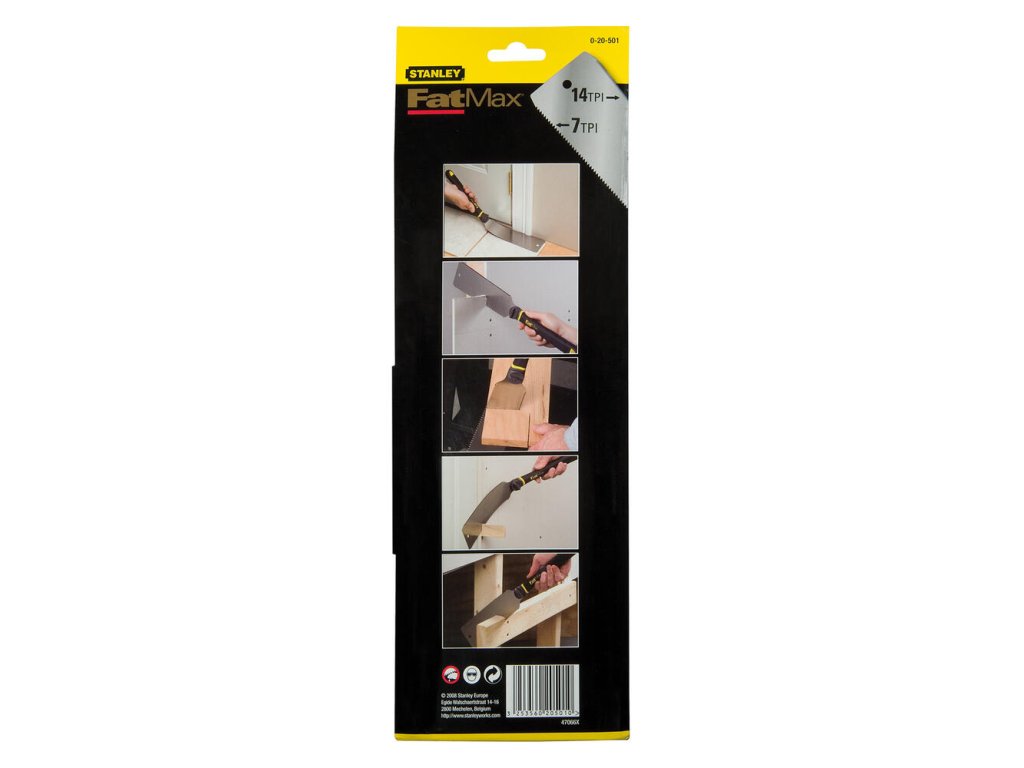 Japonská píla Stanley 0-20-501 je ručný nástroj určený pre rýchle a presné rezanie ťahom. Má obojstranne ozubenú pružnú čepeľ s dĺžkou 250 mm (17 a 22 zubov na palec), ktorá umožňuje rezanie v obťažné dostupných priestoroch alebo pozdĺžne rezanie. Zuby JET CUT zaisťujú rýchle rezanie ťahom. Ergonomická bimateriálna rukoväť zvyšuje komfort a ovládanie. Píla je vhodná pre začišťovacie a dekoračné práce.