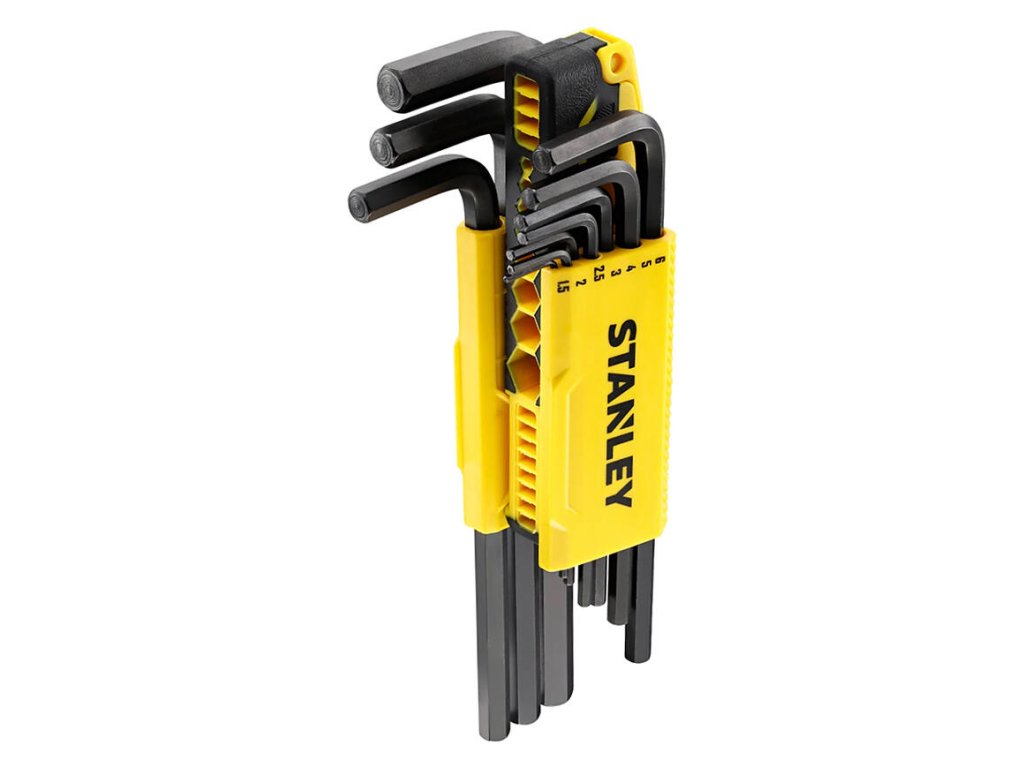 9-dielna sada šesťhranných imbus kľúčov Stanley 0-89-904 obsahuje kľúče s priemerom od 1,5 mm do 10 mm, vyrobené z vysoko akostnej chróm-vanádiovej ocele s čiernym galvanickým antikoróznym povlakom. Súčasťou sady je multifunkčná rukoväť, ktorú možno použiť ako "L" predĺženie ramena pre maximálnu silu, alebo ako "T" rukoväť pre presné rozloženie pôsobiacej sily.