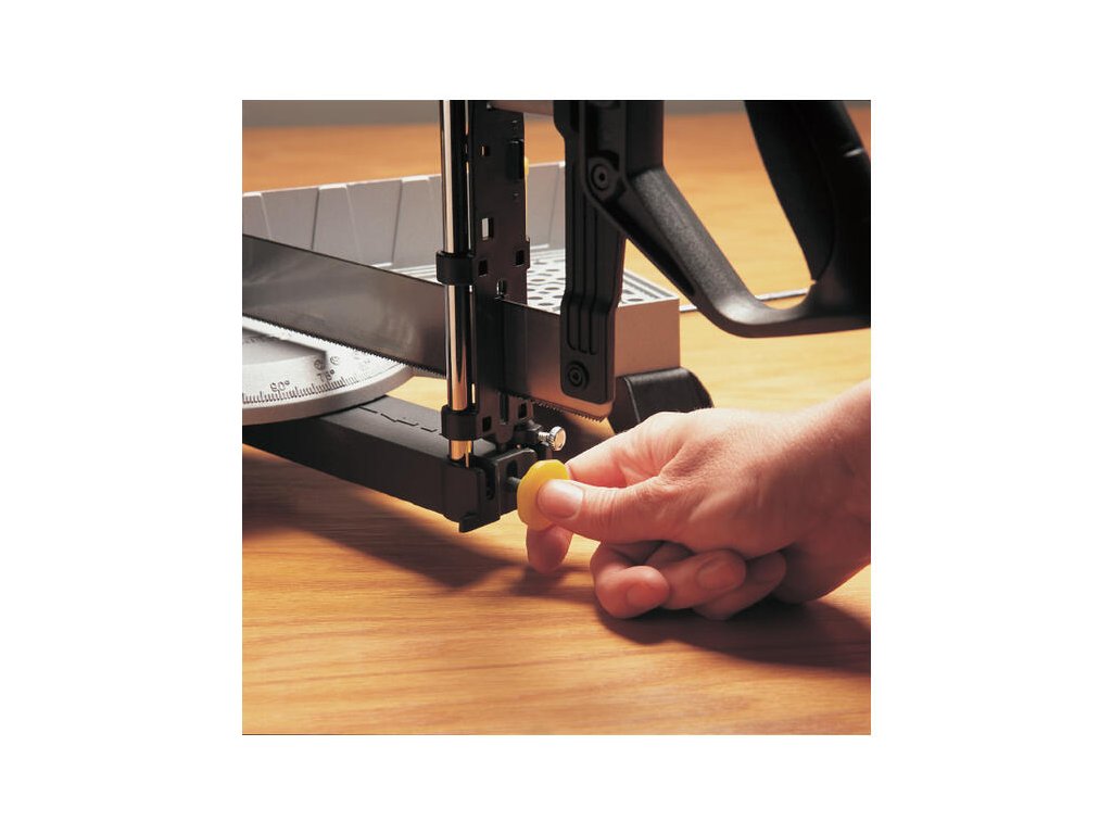 - Nastaviteľné uhly rezania 30°, 45°, 60° a 90°, zarážka na fixáciu nastaveného uhla