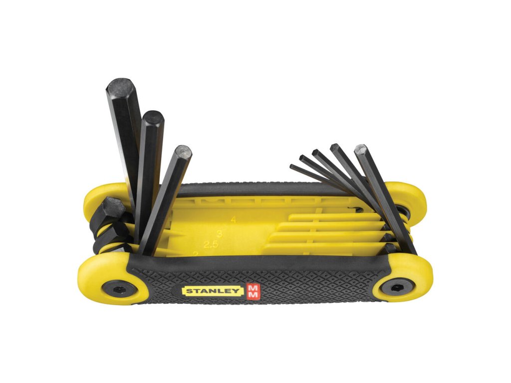 8-dielna nožová sada imbus kľúčov Stanley 2-69-264 v metrických rozmeroch (1,5 až 8 mm) je skladacia kapesná súprava. Pohodlná ergonomická rukoväť s pryžovým povrchom zaisťuje pevný úchop. Kľúče sú čierne fosfátované a majú zrazené hrany pre jednoduchšie zavedenie do otvoru v hlave skrutky.