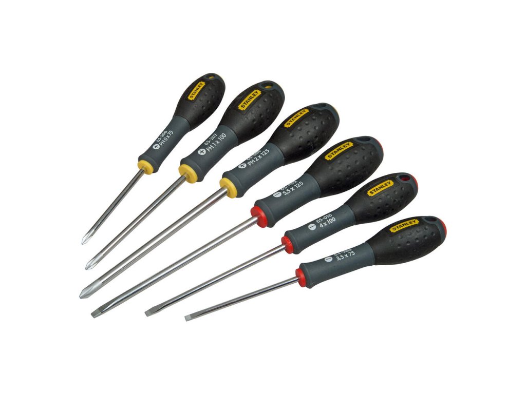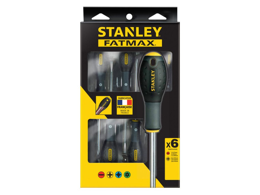 Sada 6 skrutkovačov Stanley FMHT0-62626 FatMax je základná súprava pre každodenné použitie. Drieky sú vyrobené z odolnej chróm-vanádiovej ocele a hroty sú pieskované. Ergonomicky navrhnuté rukoväte zabezpečujú pohodlné a efektívne skrutkovanie. Sada obsahuje najčastejšie používané rozmery plochých paralelných a krížových Phillips skrutkovačov.