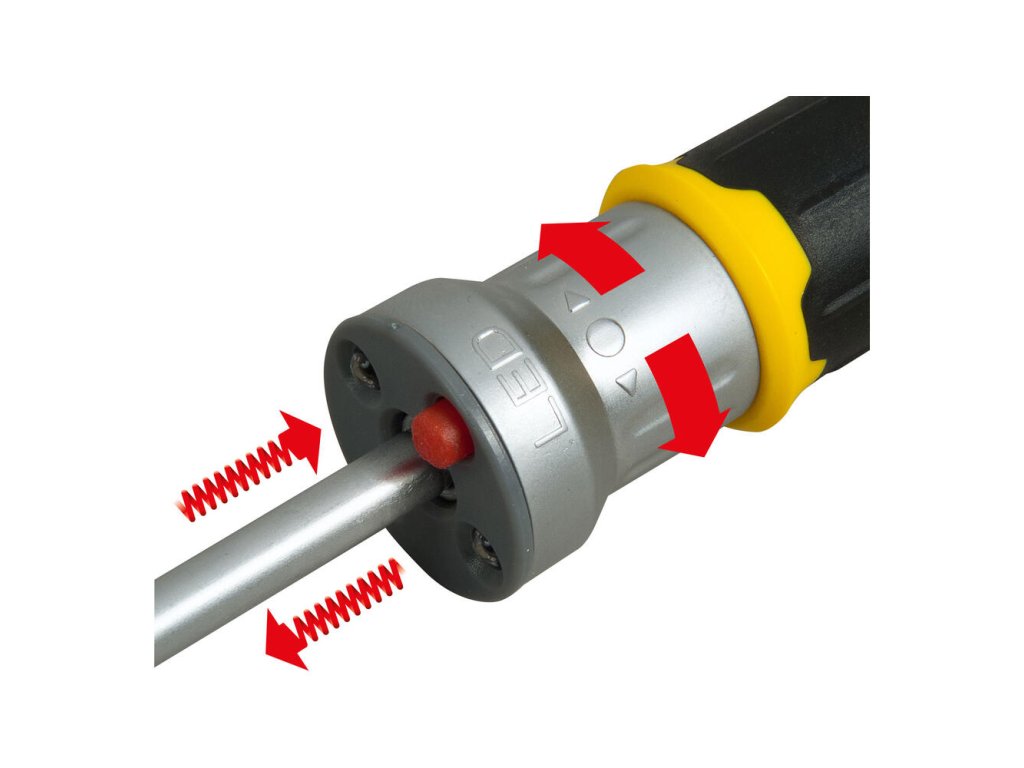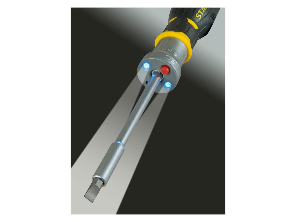 LED skrutkovač Stanley FMHT0-62689 FatMax je multifunkčný nástroj ideálny pre prácu v zle osvetlených priestoroch. Ráčňový mechanizmus so 45 zubami umožňuje jemný a plynulý chod s vysokým krútiacim momentom. Má 3-polohovú račňu (vľavo, vpravo, uzamknuté). Sada obsahuje 12 bitov, ktoré sú farebne kódované pre jednoduchú identifikáciu.