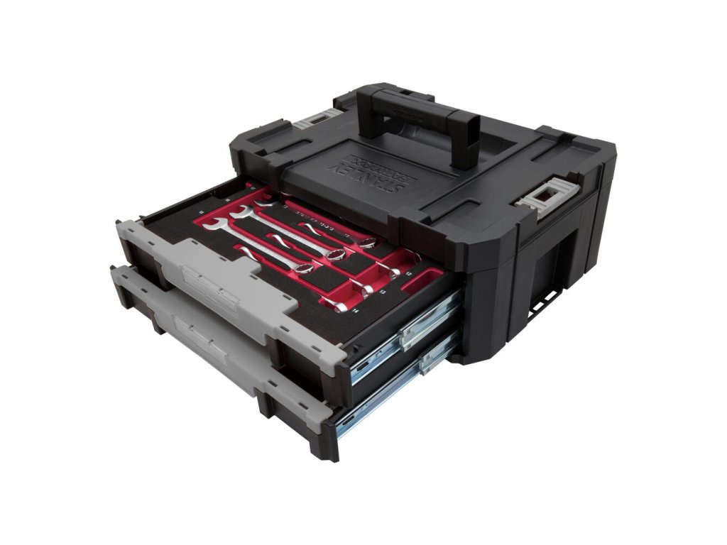 Sada očkoplochých kľúčov Stanley FMHT0-74298 obsahuje 10 kľúčov v rozsahu 10 mm až 19 mm, ktoré sú prehľadne uložené vo vložke určenej do kufrov systému Tstak. Táto organizácia zabezpečuje, že kľúče sú chránené a rýchlo dostupné. Je to ideálny doplnok pre profesionálov, ktorí používajú stohovateľný systém Tstak.
