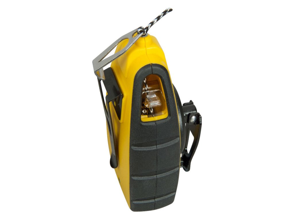 - Skládací klička sa počas nečinnosti zaklapne do pouzdra lajnovací šňůry