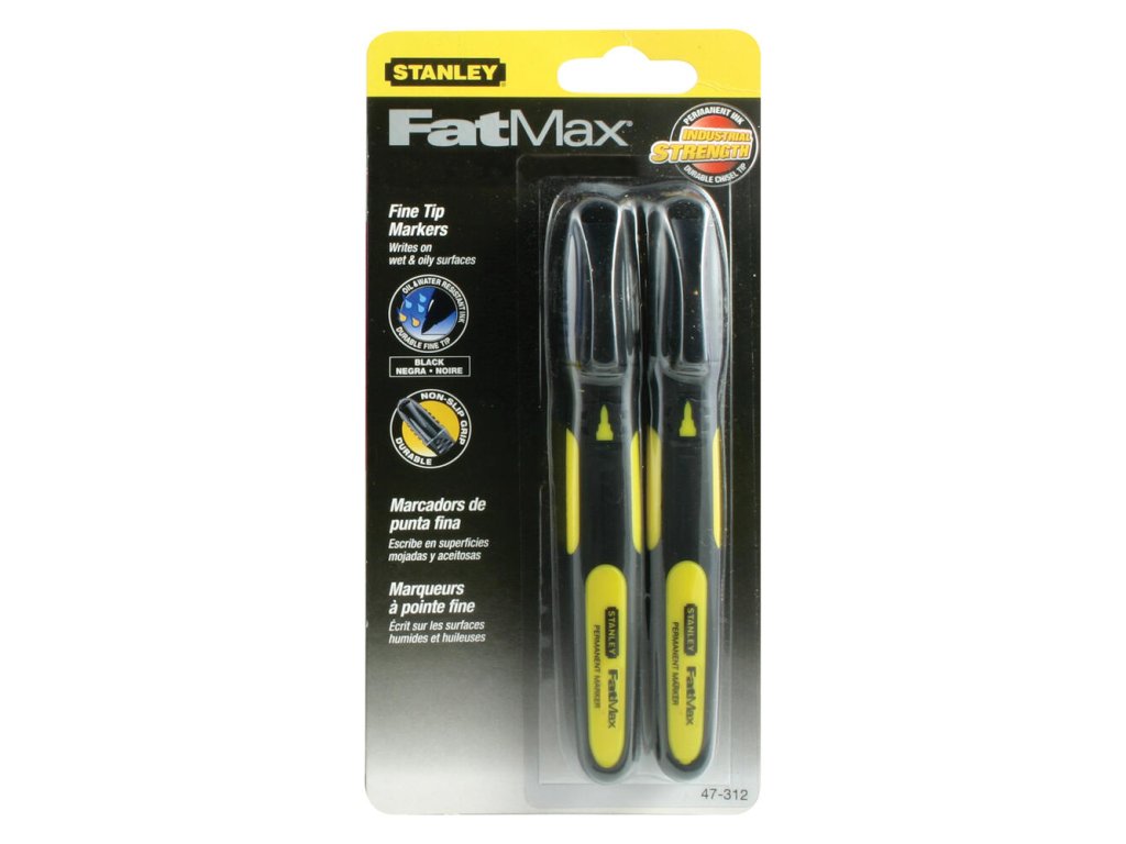 Značkovače Stanley FATMAX s jemným hrotom sú ideálne na profesionálne použitie. Balenie obsahuje 2 kusy čiernych značkovačov. Majú permanentný atrament vhodný na značenie za všetkých podmienok a silný hrot odolný voči opotrebovaniu.