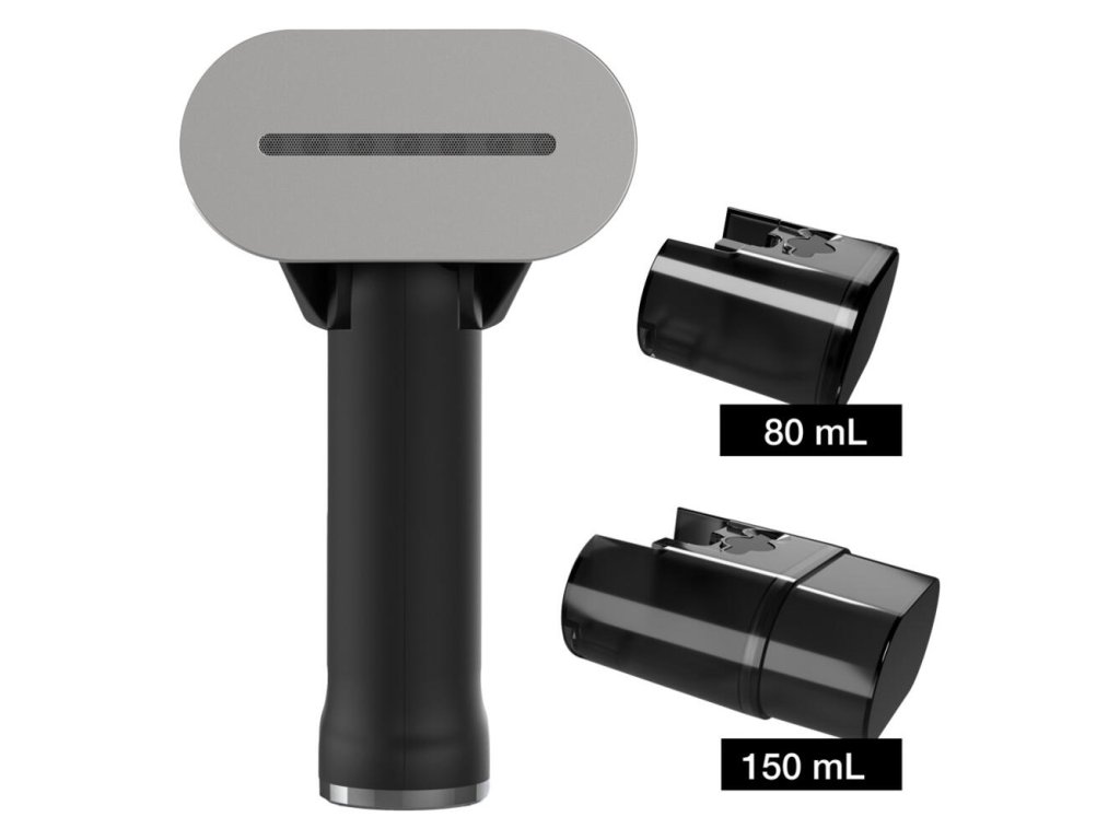 Naparovač odevov SteamOne JAMES V2 je vybavený dvoma vymeniteľnými nádržkami na vodu s objemom 80 ml a 150 ml.