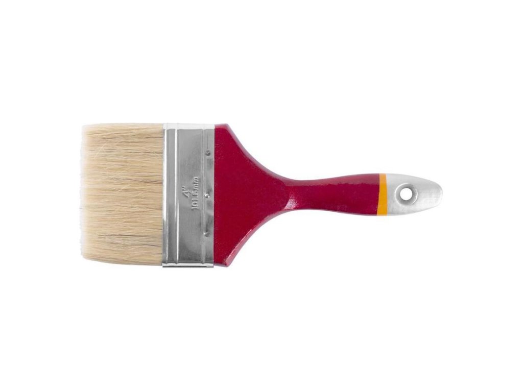 Plochý štetec Strend Pro je neoddeliteľnou súčasťou výbavy každého maliara. Jeho šírka je 4". Držadlo štetca je červenej farby a je vyrobené z dreva s možnosťou zavesenia. Štetiny sú vyrobené z PVC (polyvinyl chlorid). Štetec je vhodný pre syntetické farby.