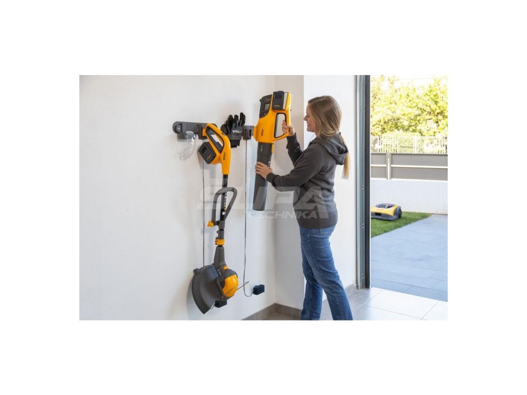 - Vďaka priloženému úložnému systému naviac môžete náradie zavesiť na stenu a ľahko dobíjať.