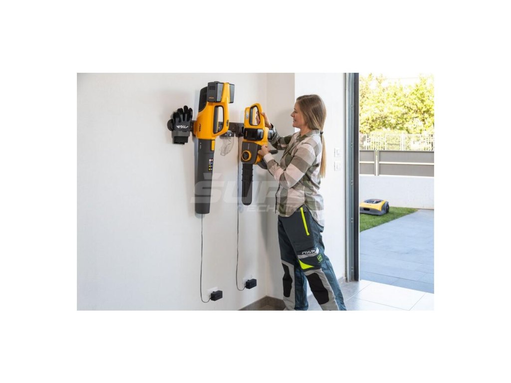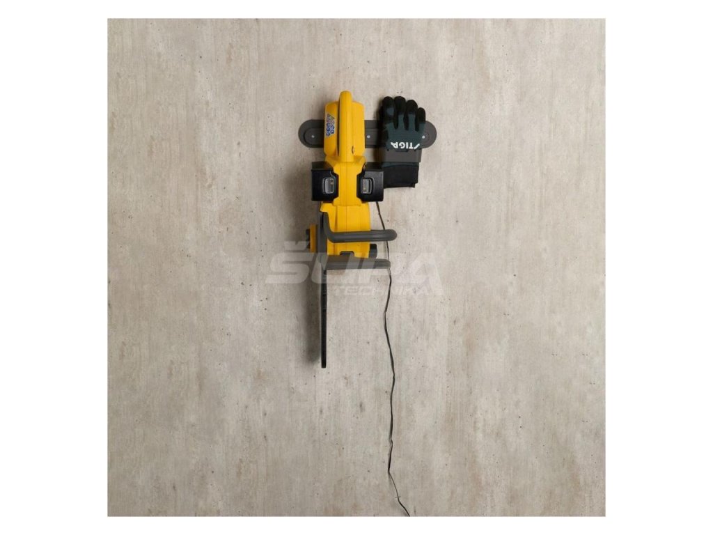 - Vďaka priloženému úložnému systému môžete naviac náradie zavesiť na stenu a pohodlne nabíjať.