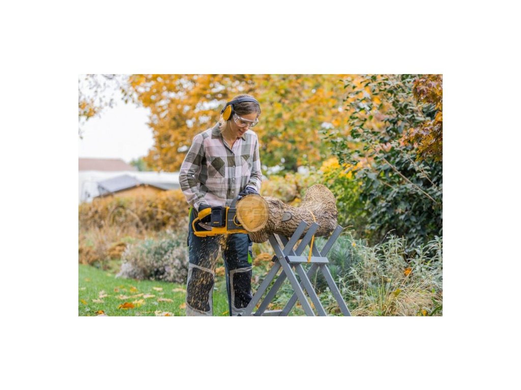 - Spolupráca dvoch akumulátorov zaisťuje väčší výkon pre lepší rezný výkon, ktorý umožňuje viac než 80 rezov na jedno nabitie, a to aj s polenom o priemere 120 mm.