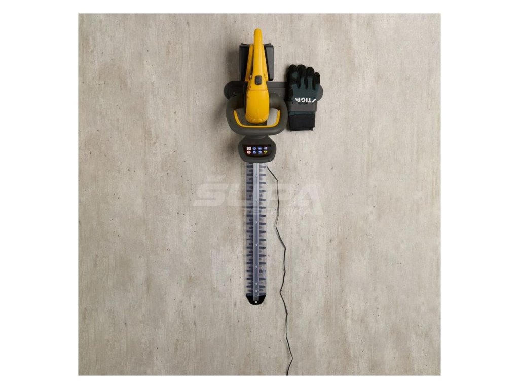 - Nástroj vydrží pracovať až 1 hodinu na jedno nabitie a ponúka tak tichšiu alternatívu k typickým benzínovým nožniciam na živý plot.