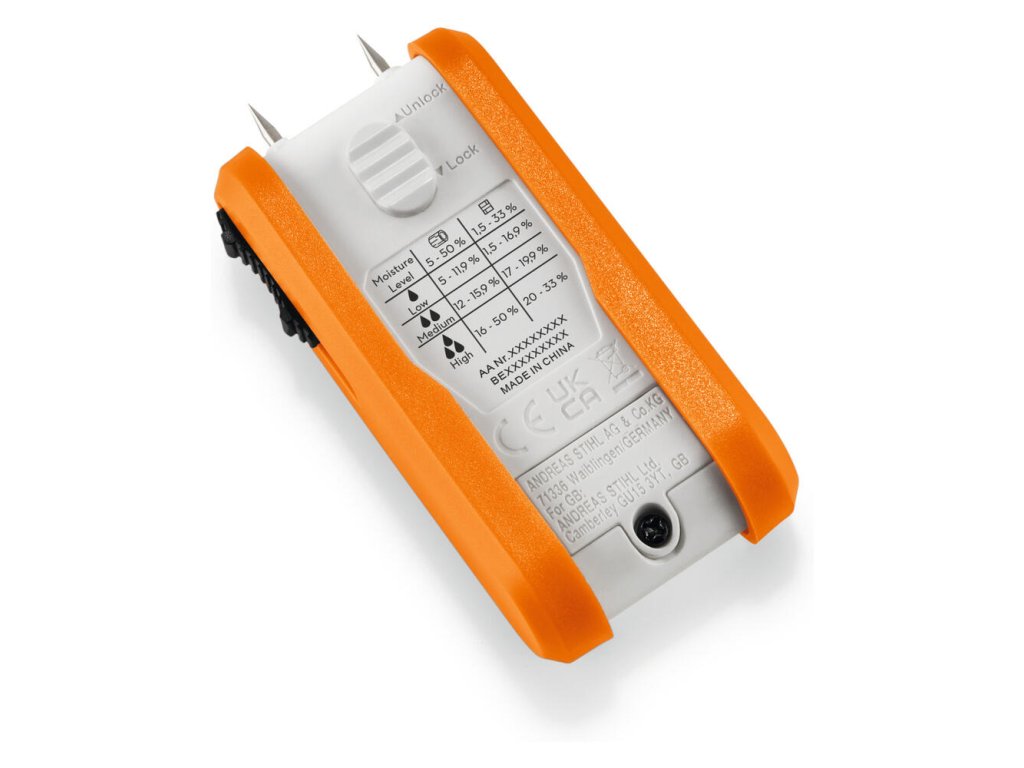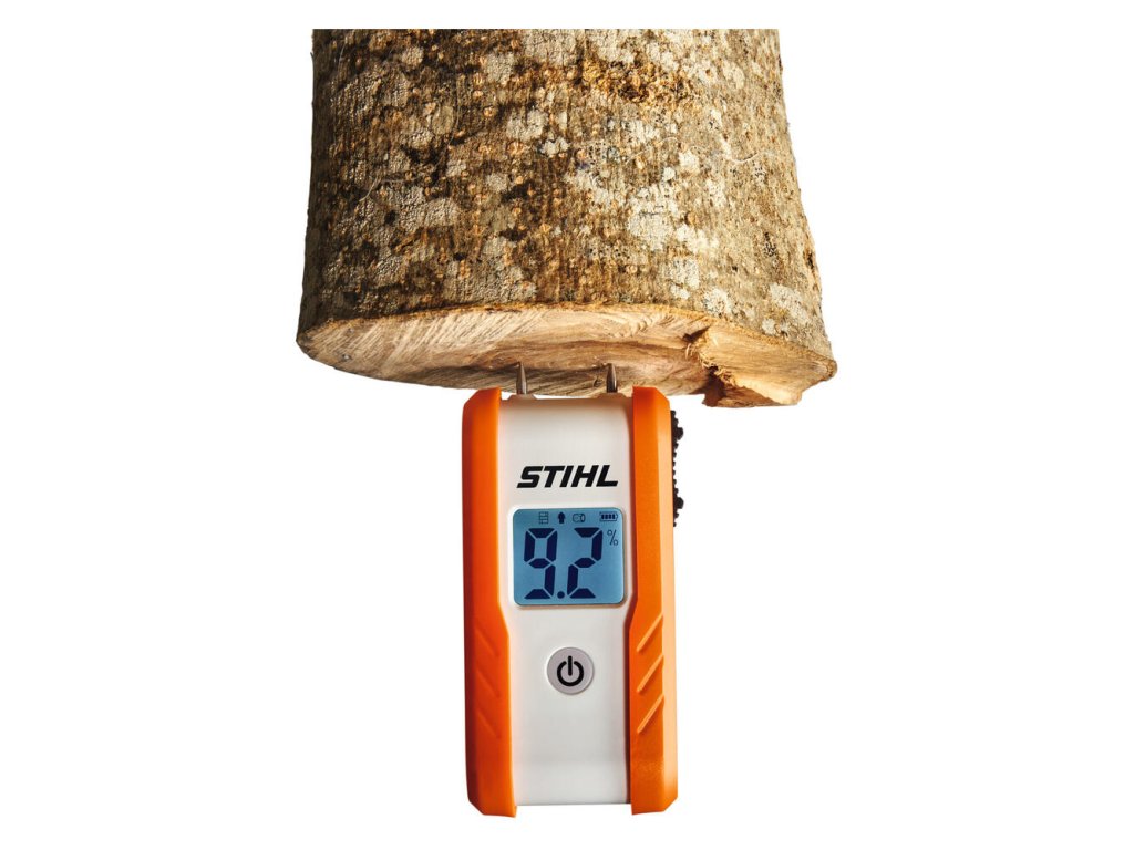 Batériový digitálny merač vlhkosti dreva STIHL s podsvieteným displejom meria vlhkosť palivového dreva a reziva (paliet), ako aj omietky a cementu na vysokofrekvenčnom princípe merania. Prístroj meria aj okolitú teplotu. V porovnaní so svojím predchodcom zaujme tento model novým, inovatívnym dizajnom s pogumovanými rukoväťami a výsuvnými snímačmi, ako aj šikovnosťou a technickou precíznosťou vďaka novej čipovej technológii.