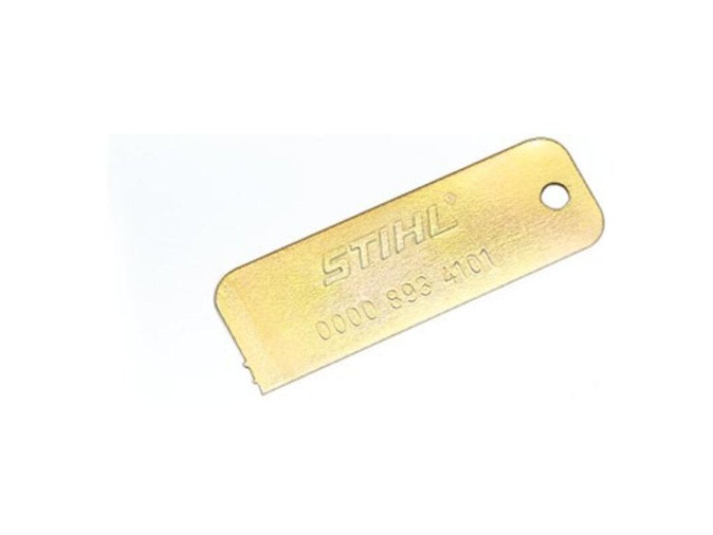 Kontrolka mierka STIHL na meranie stavu opotrebovania reťazového kolesa.