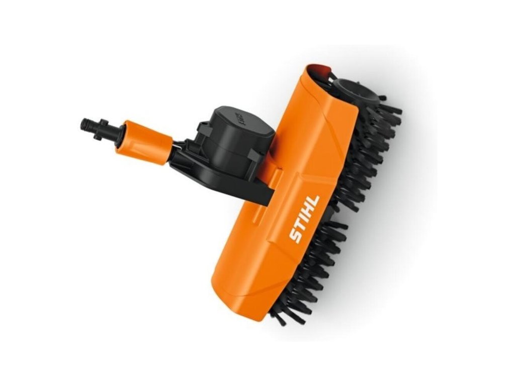 Vďaka bajonetovej spojke môžete rotačný kefový valec rýchlo a jednoducho pripojiť priamo k pištoli, tryskovej tyči alebo teleskopickej tryskovej tyči STIHL, ktorá je k dispozícii ako príslušenstvo, na vašom vysokotlakovom čističi. Výmena kief je tiež jednoduchá a bez náradia pomocou rýchloupínacieho uzáveru. Rotačný kefový valec má pracovnú šírku 30 cm a ochranu proti striekajúcej vode na ochranu ľudí a životného prostredia pred striekajúcou vodou.