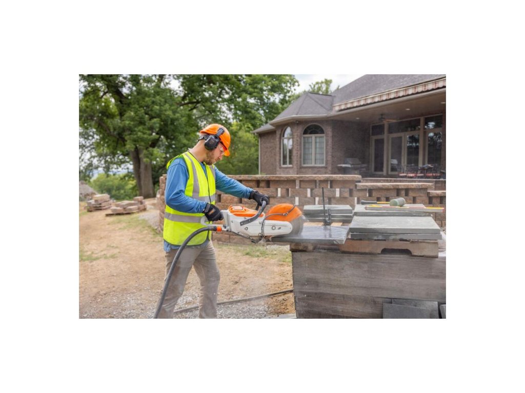 - Pre efektívne spracovanie materiálov, ako sú tehly, dlažobné kocky, prírodný kameň, betón, železobetón a armované železo sa STIHL TSA 300 štandardne dodáva s výkonným rezným kotúčom zo syntetickej živice s dlhou životnosťou 300 mm.