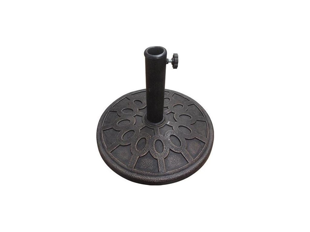 Stojan na plážový slnečník alebo dáždnik je vyrobený z pevného prírodného živicového materiálu. Spodná podstava vizuálne pripomína skôr kovový charakter, no oproti klasickému kovovému nie je tak ťažký. Navyše je celá spodná časť zvýraznená zaujímavým vzorom. Priemer tejto podstavy je 43 cm. Z podstavy vychádza stredová tyč, do ktorej sa napája slnečník. Výška tyče je 33 cm, čím poskytuje dostatočné prekrytie a spojenie častí slnečníka a stojanu. Maximálny priemer tyče požadovaného upevneného slnečníka je v rozmedzí od 38 do 52 mm. Po vložení slnečníka do tyče vychádzajúcej z podstavy je už len potrebné zaistiť ho prikrútením kolieska na boku. Hmotnosť stojanu je 9 kg.