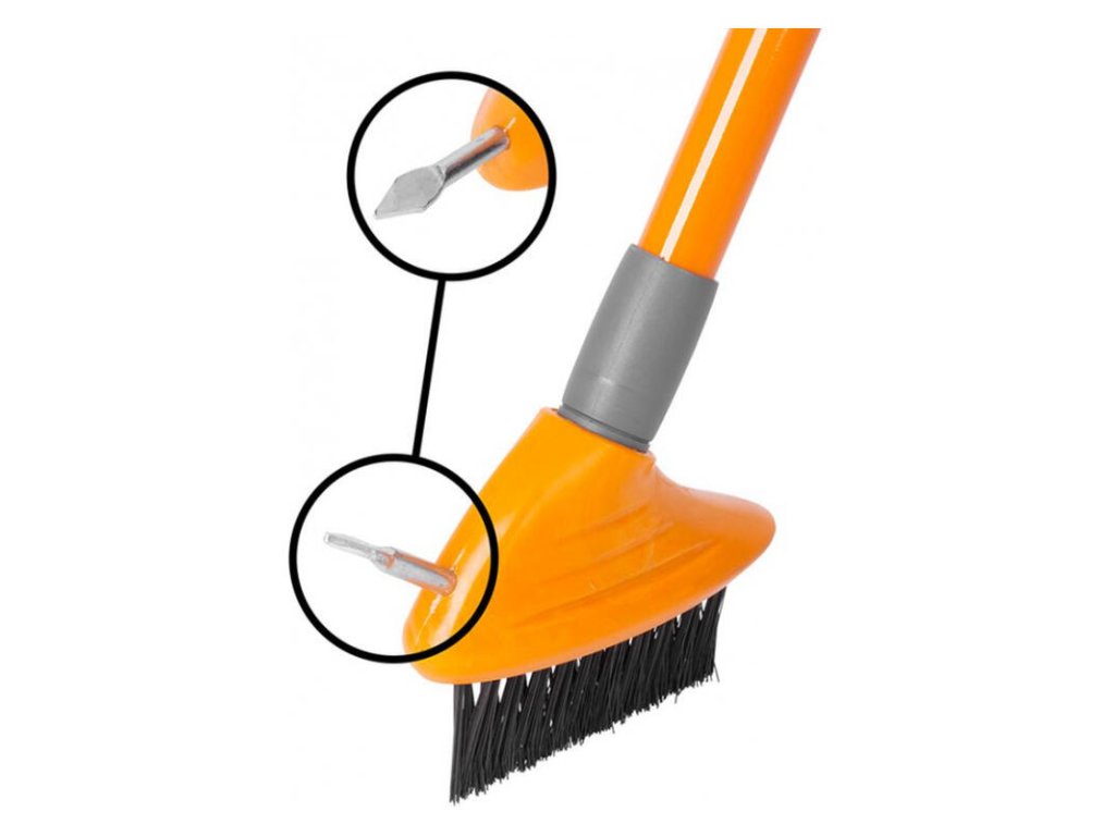 - Kefa na dlažbu Strend Pro s teleskopickou násadou slúži na odstránenie machu, buriny a iných nečistôt medzi dlaždicami.