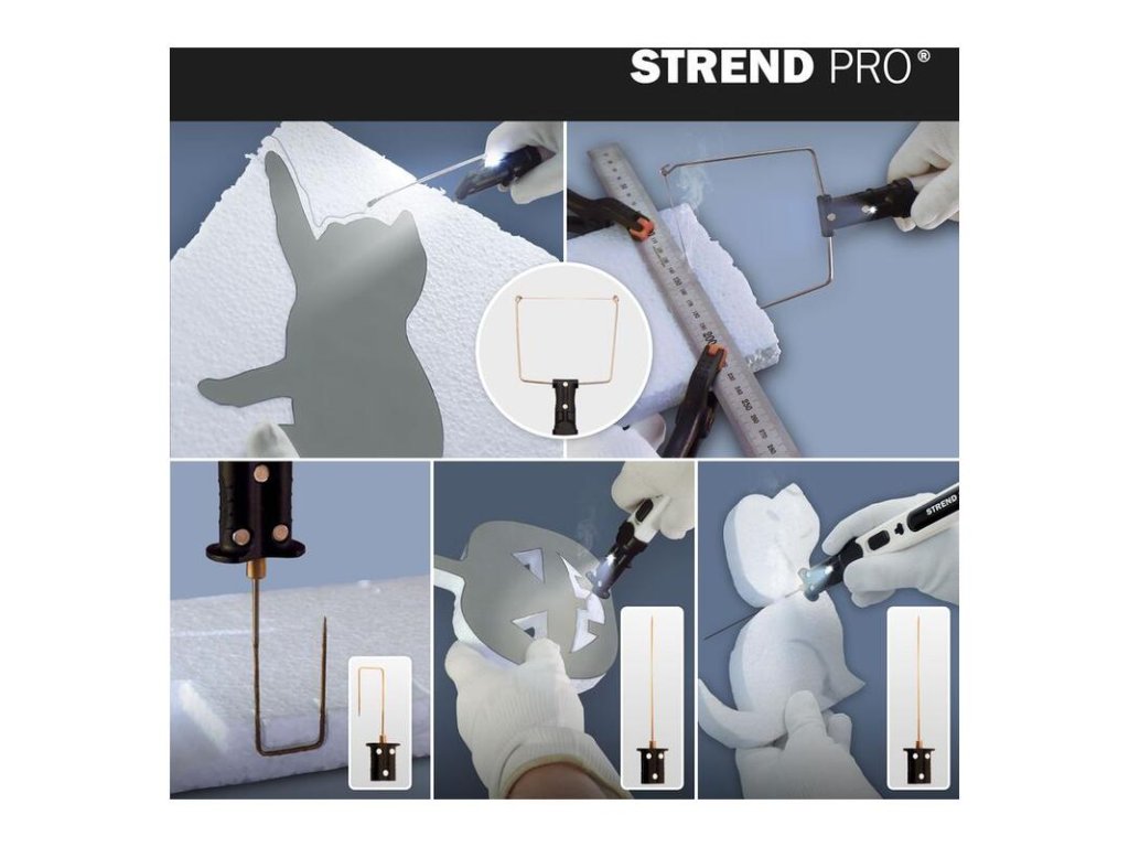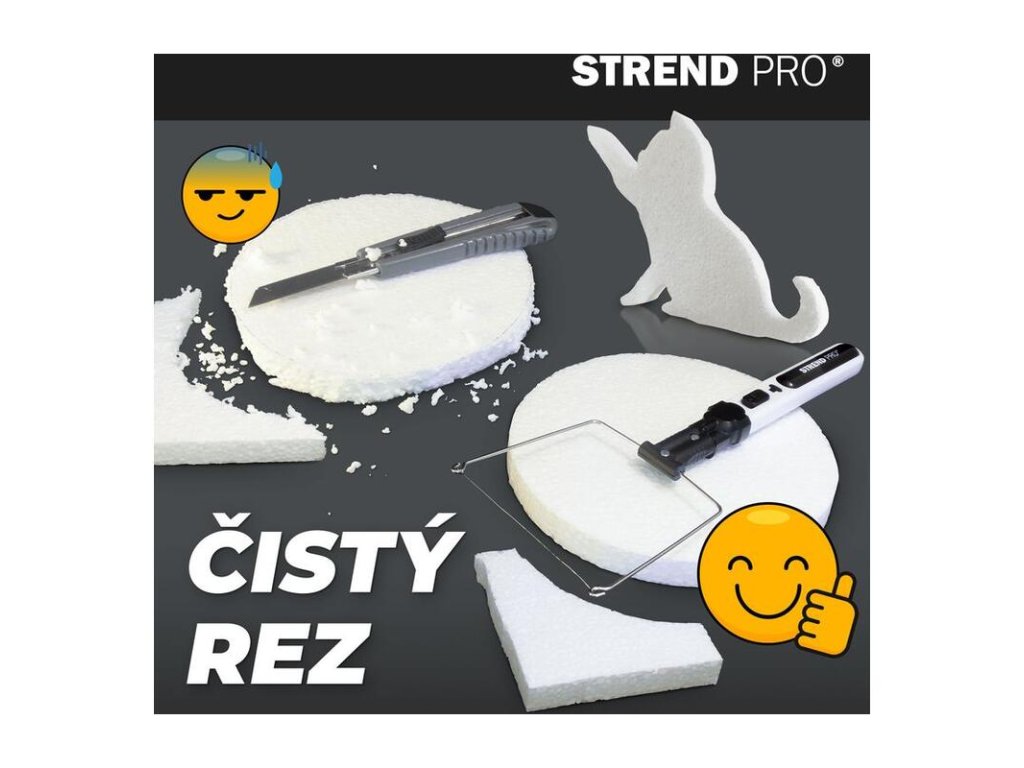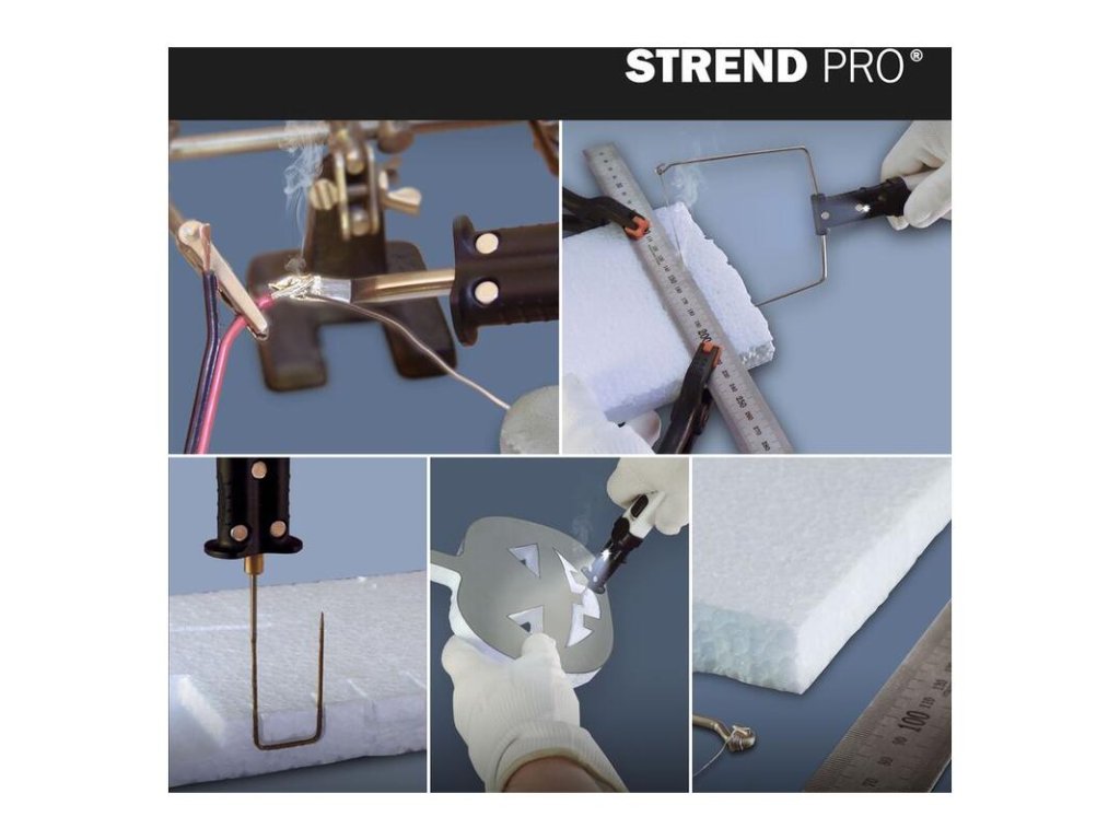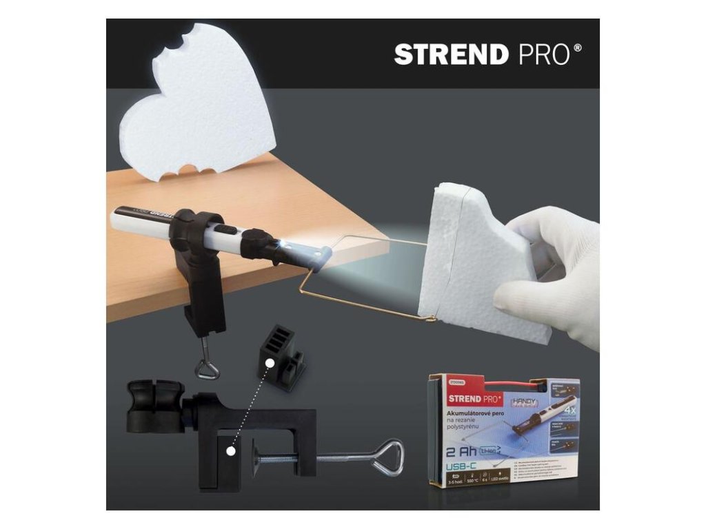 Akumulátorové pero Strend Pro je určené na jemné a presné tvarové vyrezávanie pomocou rezacieho drôtu, na vykonávanie skracovacích rezov a vyrezávanie väčších predmetov nožom z polystyrénu.