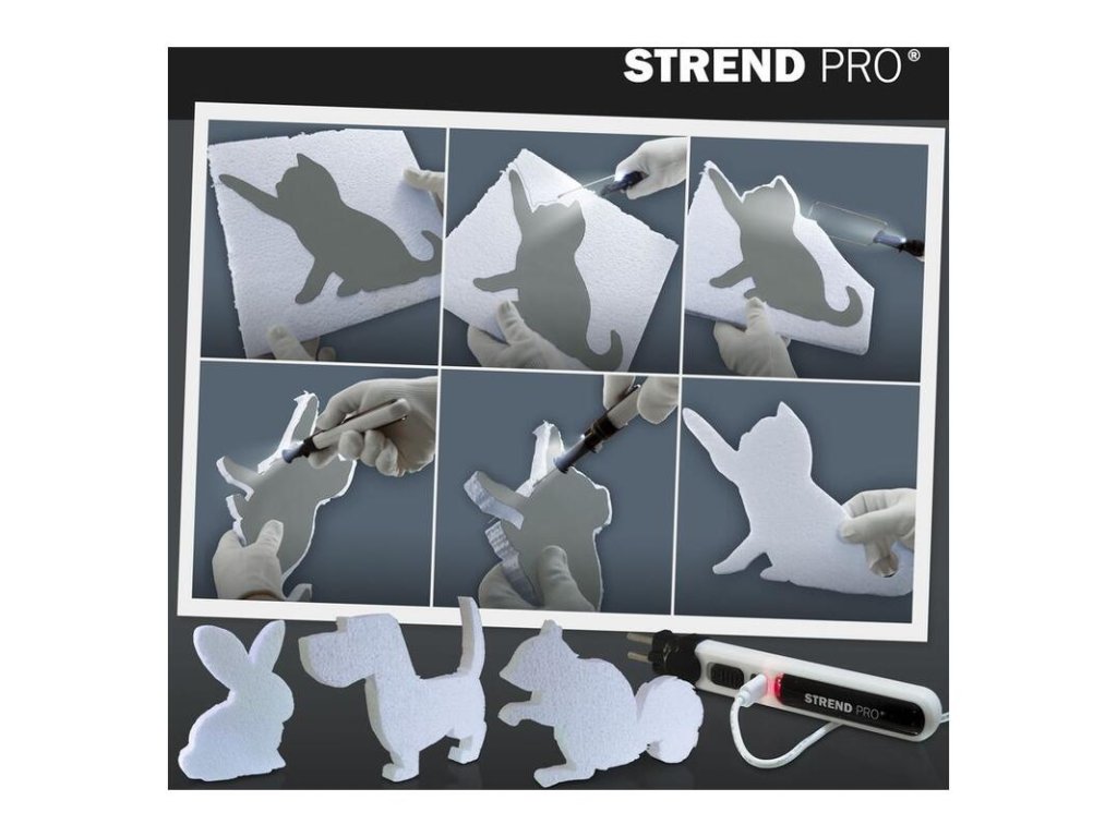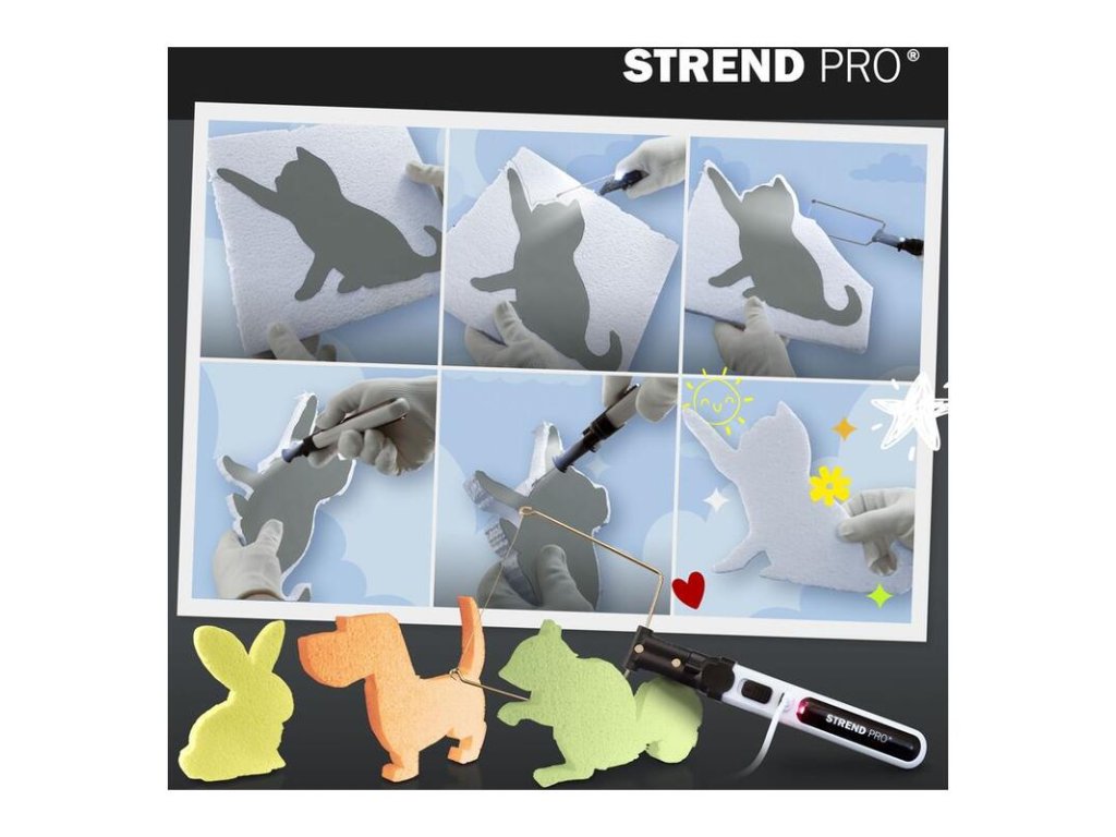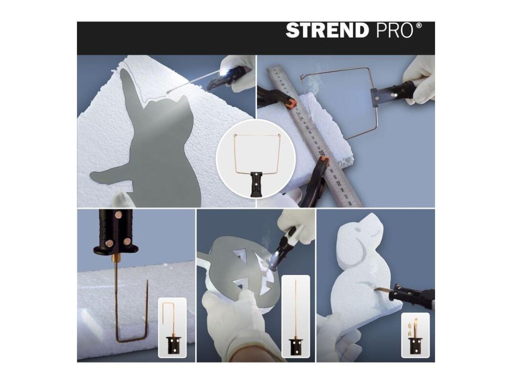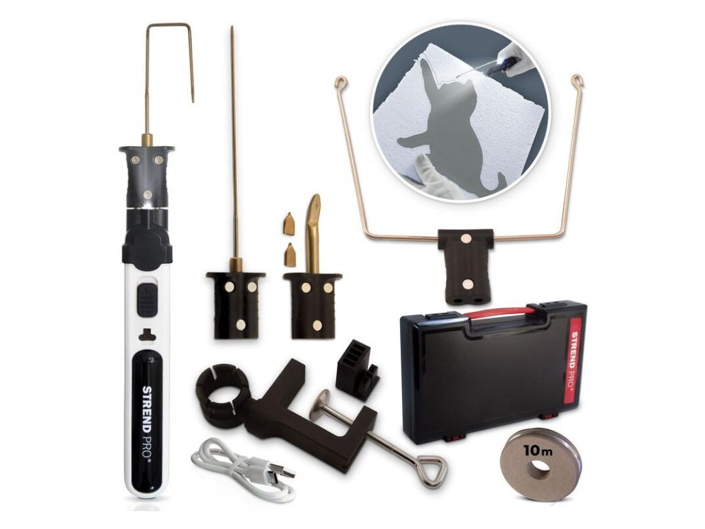 Akumulátorové pero Strend Pro je určené na jemné a presné tvarové vyrezávanie pomocou rezacieho drôtu, na vykonávanie skracovacích rezov a vyrezávanie väčších predmetov nožom z polystyrénu.