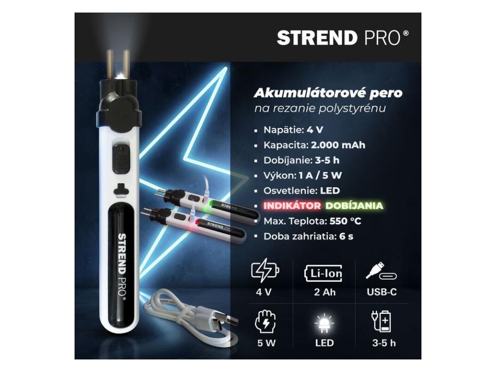 Akumulátorové rezacie pero na polystyrén s príslušenstvom 2 000 mAh Strend Pro
