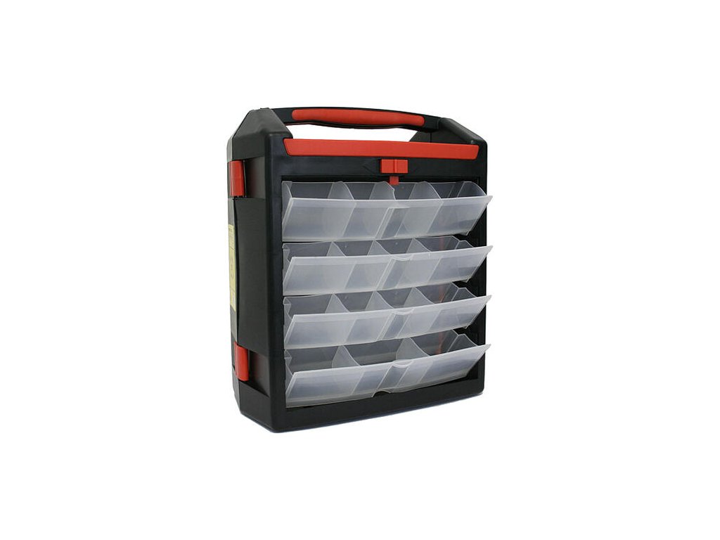 - Zabezpečuje praktické a prehľadné uskladnenie skrutiek, matíc, podložiek a podobného materiálu vďaka 30 zásuvkám.