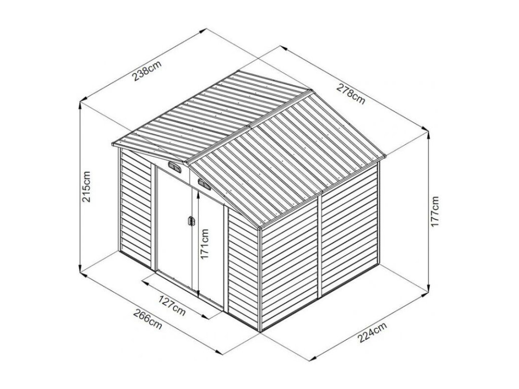 Je vyrobený z vysokokvalitného kovu, ktorý je odolný voči korózii. Otváranie pomocou dvojitých posuvných dverí. Disponuje 4 ventilačnými otvormi pre lepšie prúdenie vzduchu. Skvele sa hodí na akýkoľvek dvor, kde plní nielen praktickú, ale aj estetickú funkciou. Možnosť dokúpenia podlahovej konštrukcie.