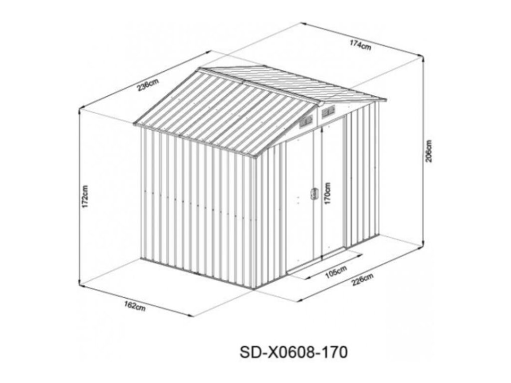 Záhradný domček Strend Pro poskytuje dostatočne veľký priestor na uskladnenie záhradného náradia, vybavenia či nábytku. Je vyrobený z vysokokvalitného kovu, ktorý je o 20% hrubší ako pri bežných záhradných domčekoch a zároveň je odolný voči korózii. Otváranie pomocou dvojitých posuvných dverí. Disponuje 4 ventilačnými otvormi pre lepšie prúdenie vzduchu. Skvele sa hodí na akýkoľvek dvor, kde plní nielen praktickú, ale aj estetickú funkciou. Možnosť dokúpenia podlahovej konštrukcie.