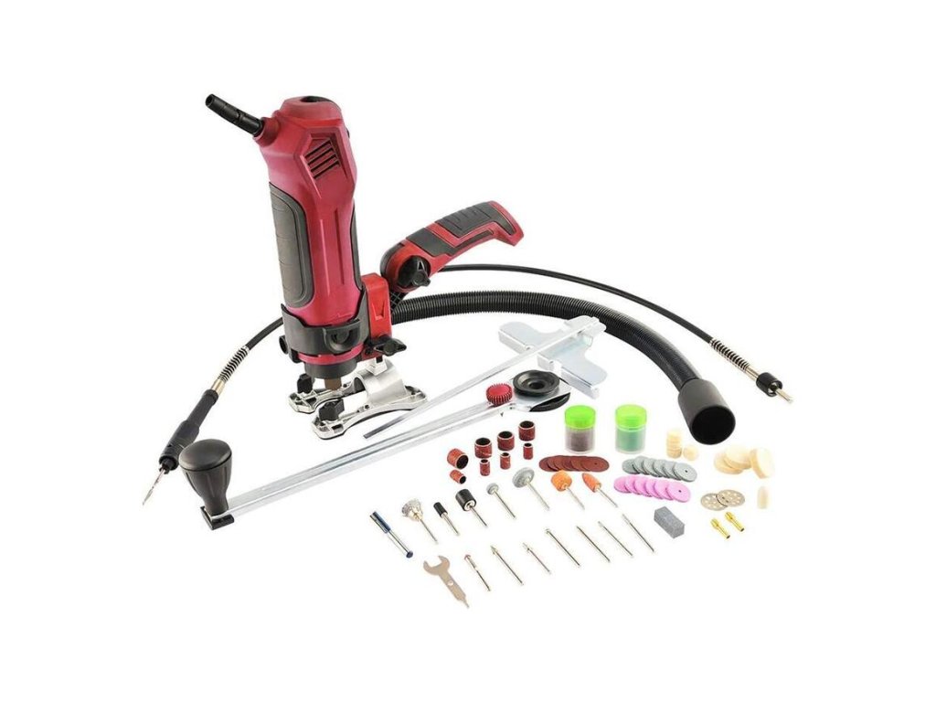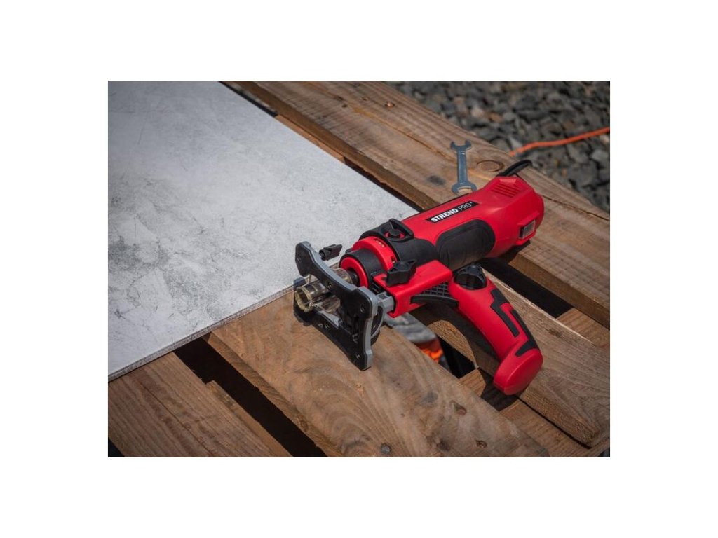 Multifunkčná fréza Strend Pro s príkonom 550 W je ideálna pre každého domáceho majstra. Bohaté príslušenstvo umožňuje rezanie všetkými smermi a uhlami, vŕtanie, ostrenie, detailné brúsenie, leštenie, tvarovanie, frézovanie, drážkovanie, čistenie či gravírovanie. Vďaka ľahko regulovateľnej rýchlosti je prechod rezania alebo brúsenia rôznych materiálov pohodlný a ľahký. Zvládne obrábať široké spektrum materiálov: tvrdé a mäkké drevo, MDF dosky, preglejka, sadrokartón, sklo, plast, sklolaminát, betón, keramika, obklad, mramor, tenký hliník. K multifunkčnej frézke môžete pripojiť stojan alebo nadstavec s bovdenom na použitie ako priama brúska. Stojan je vybavený polohovateľnou rukoväťou a odnímateľným protiprašným krytom s vývodom na pripojenie hadice na odsávanie prachu. Umožňuje tiež pripojiť pozdĺžny dôraz (na rezanie rovnobežné s hranou) alebo nastaviť hĺbku opracovania, čo umožňuje použiť frézu na drážkovanie.