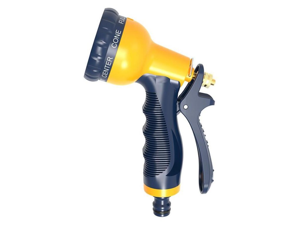 - Zavlažovacia pištoľ Strend Pro Garden s nastaviteľnou hlavou a regulátorom riadenia toku vody má 7 nastaviteľných funkcií striekania, a to: sprcha, kužeľ, plochý, centrálny, prúd, hmla a tečenie.