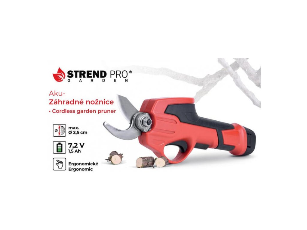 Akumulátorové nožnice STREND PRO GARDEN sú určené na strihanie konárov stromov a kríkov v ovocných sadoch či záhradách. Nemali by chýbať žiadnemu správnemu záhradkárovi alebo pestovateľovi, pretože prácu nesmierne zefektívnia. Oproti klasickým nožniciam je účinnosť ich strihania 8-10-násobne vyššia, zároveň aj kvalita strihu konára je lepšia. Odporúča sa používať ich na konáre hrubé maximálne 2,5 cm. Vyžadujú Li-ion typ akumulátora, ktorý má kapacitu 1,5 Ah a nájdete ho v balení. Akumulátor disponuje napätím 7,2 V, a taktiež bezpečnostnými poistkami, ktoré je potrebné stlačiť pri vkladaní akumulátora do zariadenia. Nabíja sa 3 až 5 hodín nabíjačkou, ktorú stačí pripojiť do zdroja napätia s 230 V.