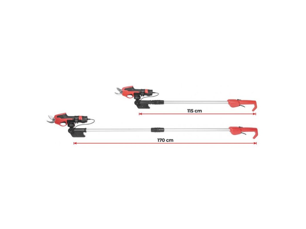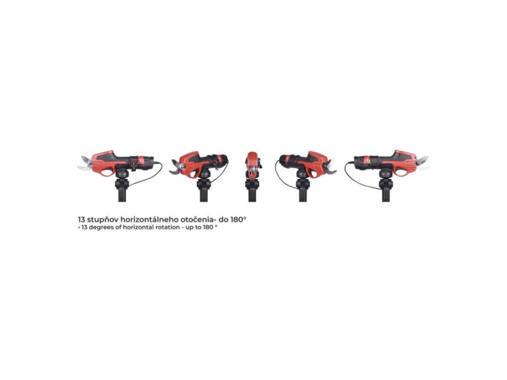 Možnosť dokúpenia teleskopickej rukoväť, ktorá Vám poslúži vo väčších výškach alebo ťažko dostupných miestach. Výhodou týchto nožníc je aj možnosť nastavenia vertikálneho a horizontálneho sklonu. Pri vertikálnom sklone máte k dispozícii 4 tlačidlom nastaviteľné uhly sklonu od 0° do 90°. Horizontálny sklon môžete nastaviť v ľubovoľnom uhle od -90° do 90°. Nožnice STREND PRO GARDEN sú kvôli Vašej bezpečnosti pri práci vybavené aj zaisťovacím tlačidlom, ktoré bráni ich nechcenému spusteniu. Preto, ak chcete nožnice spustiť, je potrebné súčasne stlačiť spúšť aj zaisťovacie tlačidlo. Akumulátor a nabíjačka sú súčasťou balenia.