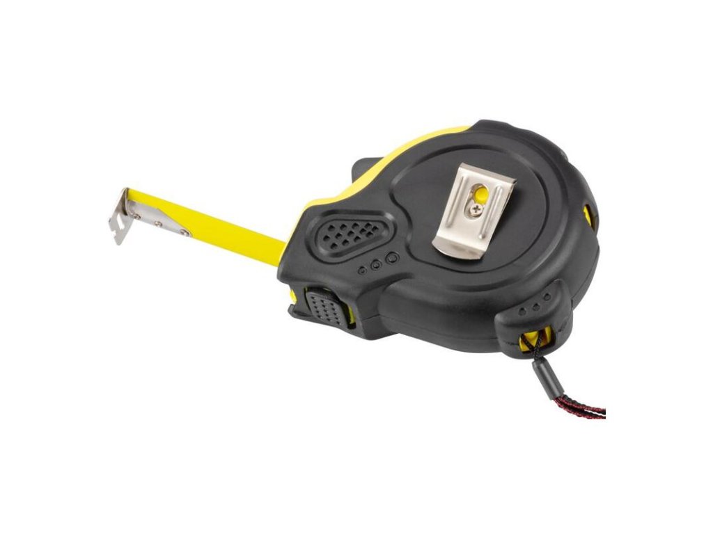 - Tento komfortný meter z veľmi pružnej ocele je vybavený praktickým klipom na opasok a pútkom na ruku.