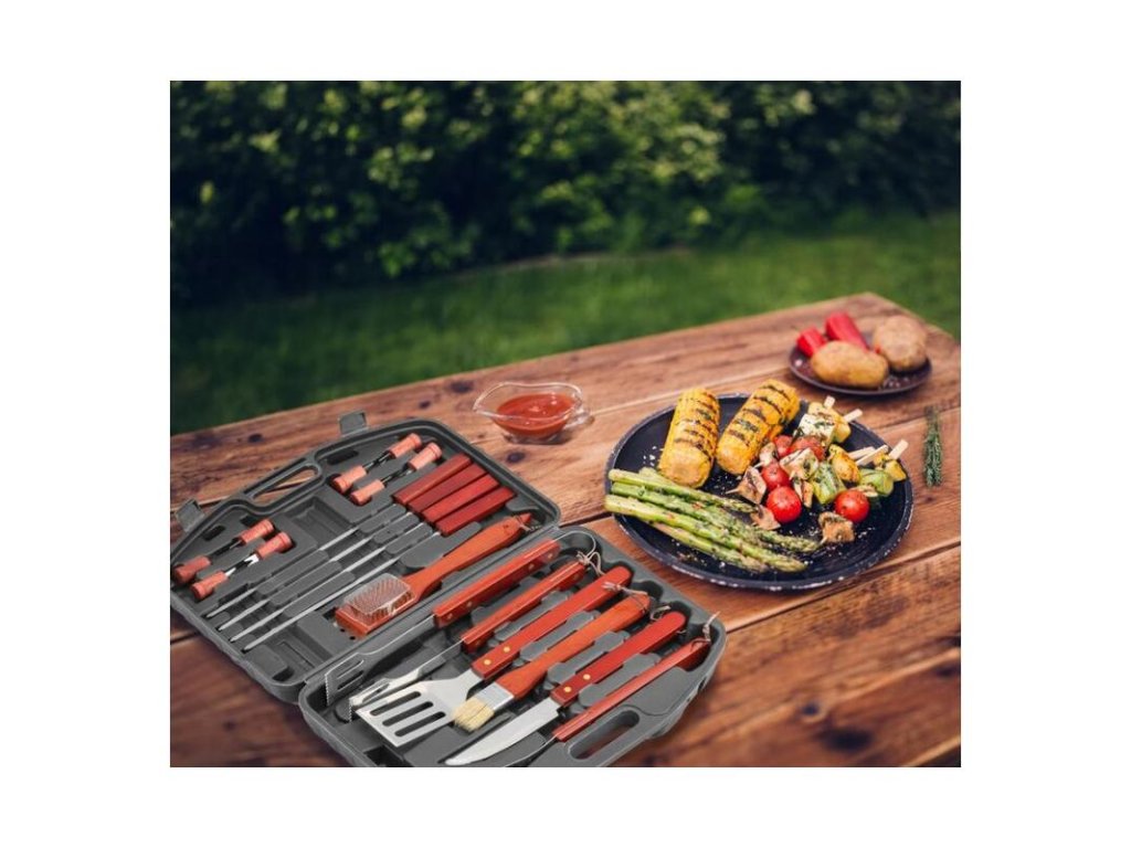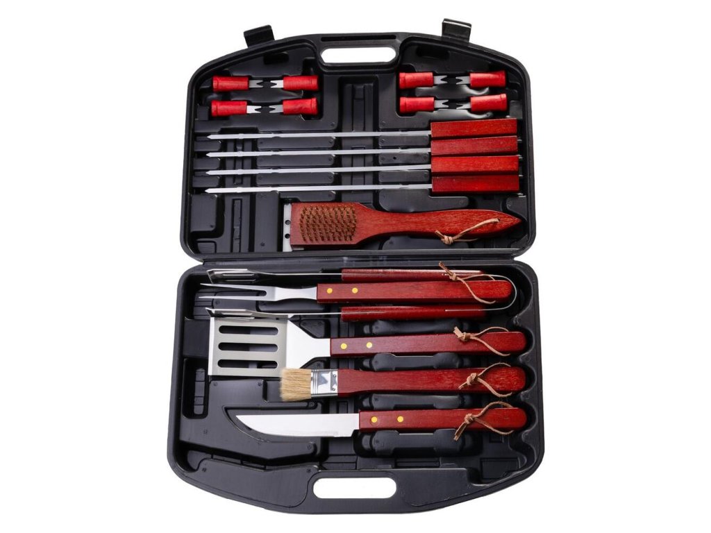 19-dielna sada na grilovanie slúži ako príslušenstvo ku každej grilovačke. Sada obsahuje grilovacie kliešte, obrácačku, štetec na mazanie, vidlicu, škrabku, nôž, či ihlice. Set je dodávaný v kufríku.