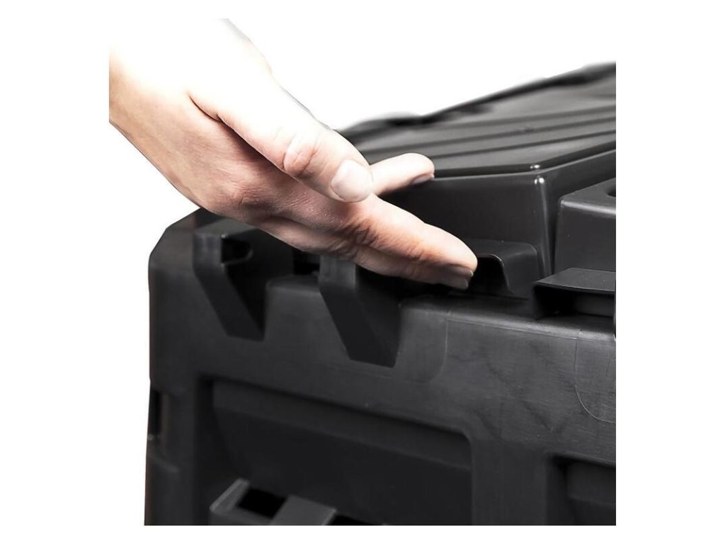 Poklop s rukoväťou chráni obsah pred škodcami a silným vetrom, zatiaľ čo jednoduchá montáž bez potreby náradia umožňuje rýchlu inštaláciu na akomkoľvek mieste.