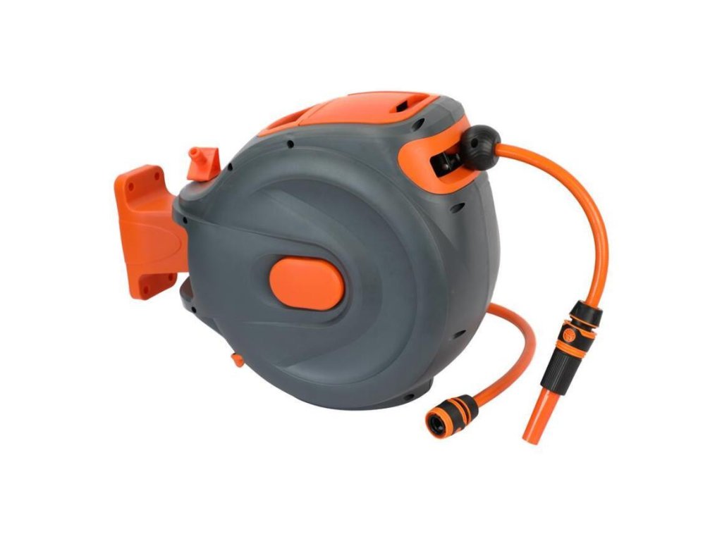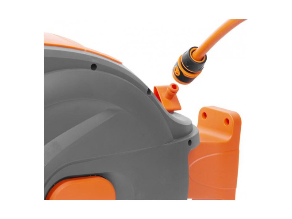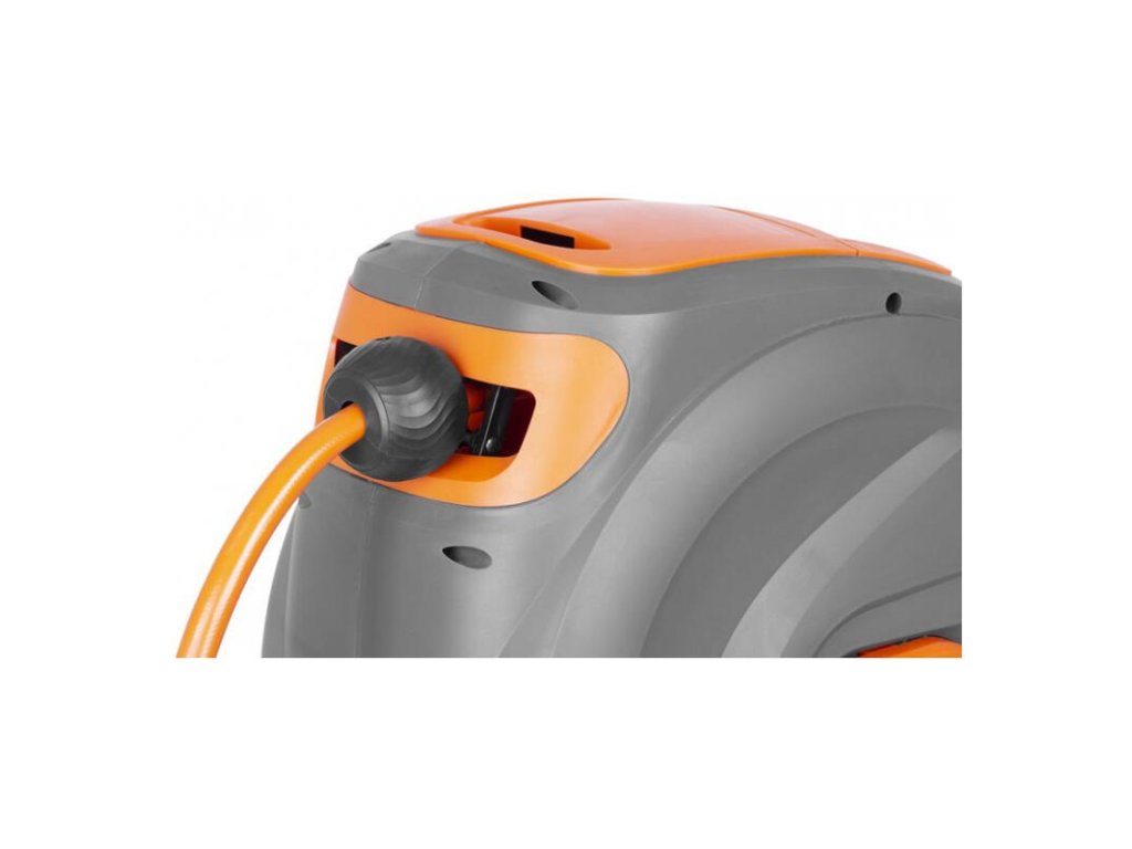 Praktický navíjač na stenu Strend Pro Premium má obrovský vnútorný priestor, elegantný vzhľad a silnú konštrukciu. Jednotka sa dá ľahko vybrať z držiaka potiahnutím kolíka a odmontovaním z vodovodného kohútika, preto sa nemusíte báť, že v zime sa hadica zničí mrazmi. Montážny držiak sa otáča do 180 °. Hadicu je možné zastaviť takmer na centimeter presne vďaka patentovanému zámku voliteľnej pozície. Pracovný tlak: 10-25 barov. Príslušenstvo: hadica 30m+2m 1/2", nastaviteľná dýza + 2x rýchlospojka + prípojka na vodovodný kohútik s redukciou + 180° otočný držiak na stenu a technické vybavenie na montáž.