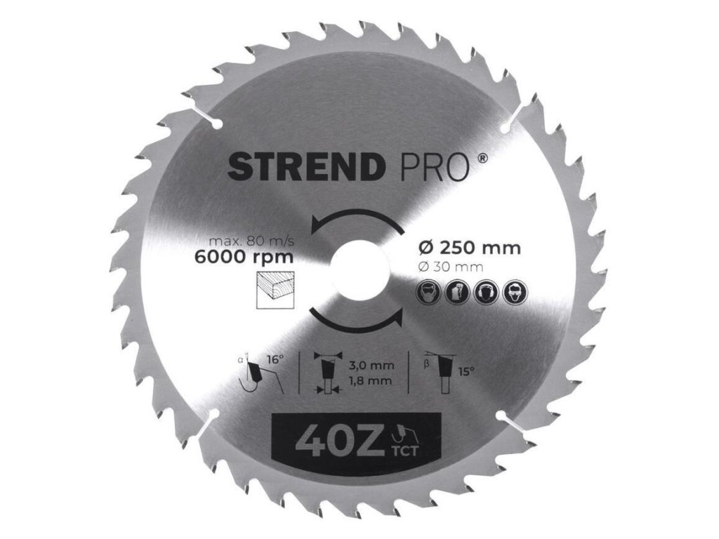 Strend Pro Pílový kotúč na drevo TCT 250 x 3,0 x 30/20 mm 40T