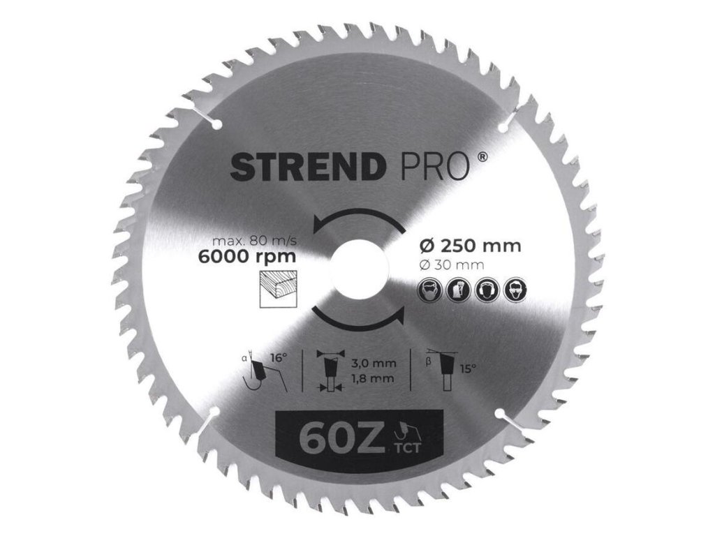 Strend Pro Pílový kotúč na drevo TCT 250 x 3,0 x 30/20 mm 60T