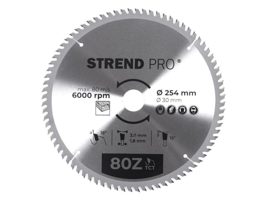 Pílový kotúč na drevo TCT 254 x 3,0 x 30/20 mm 80T Strend Pro