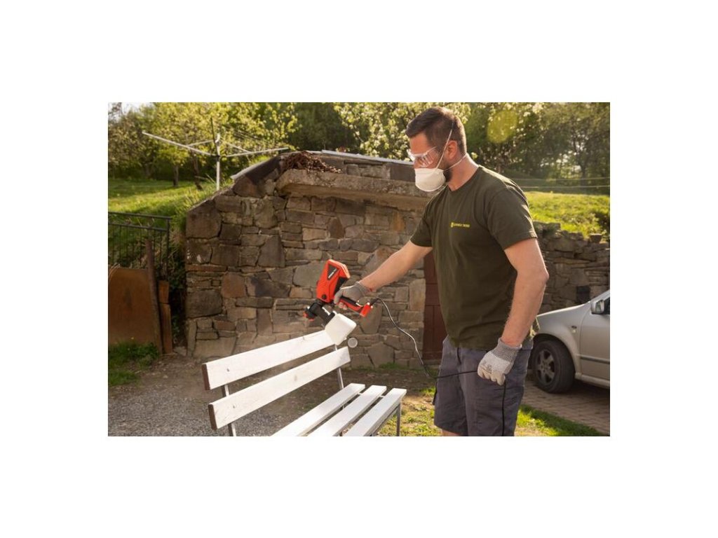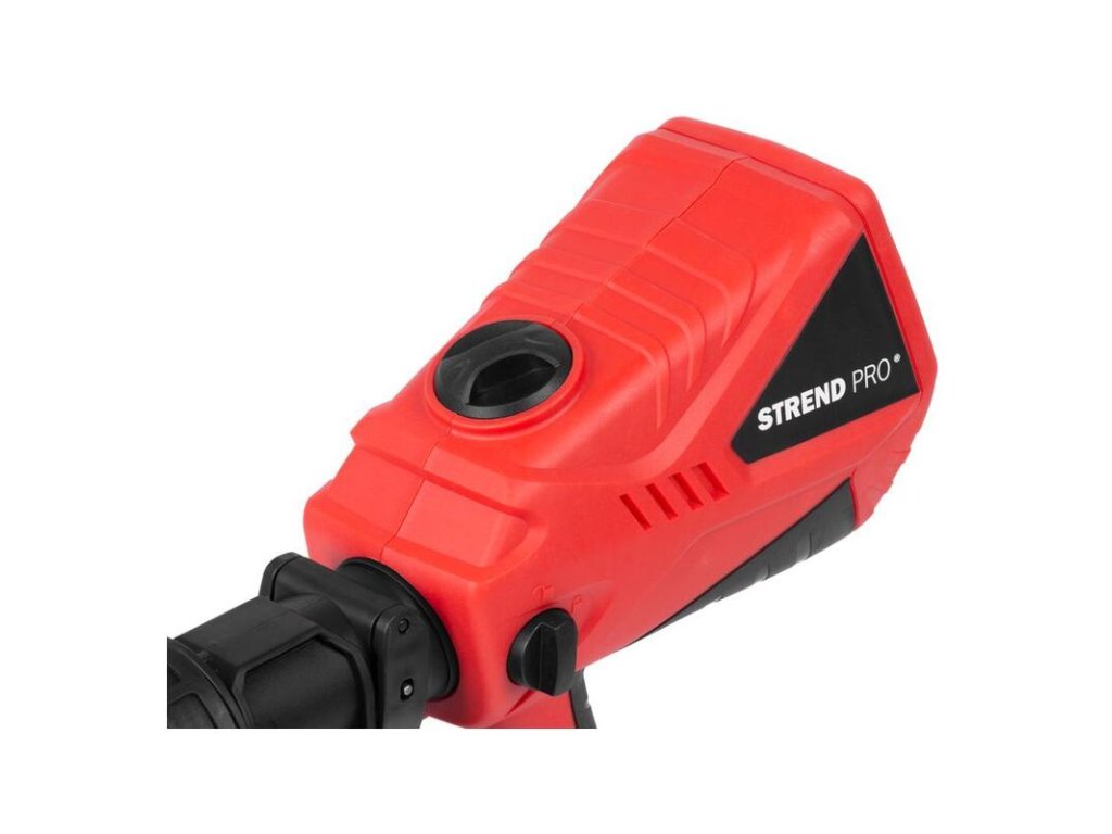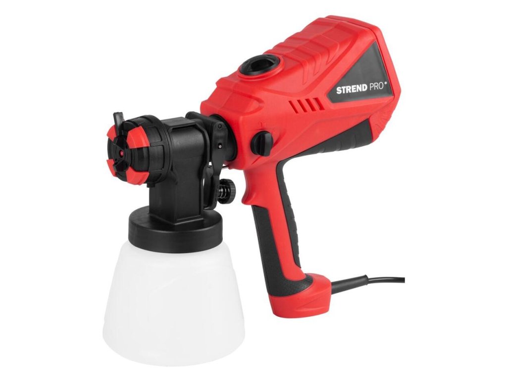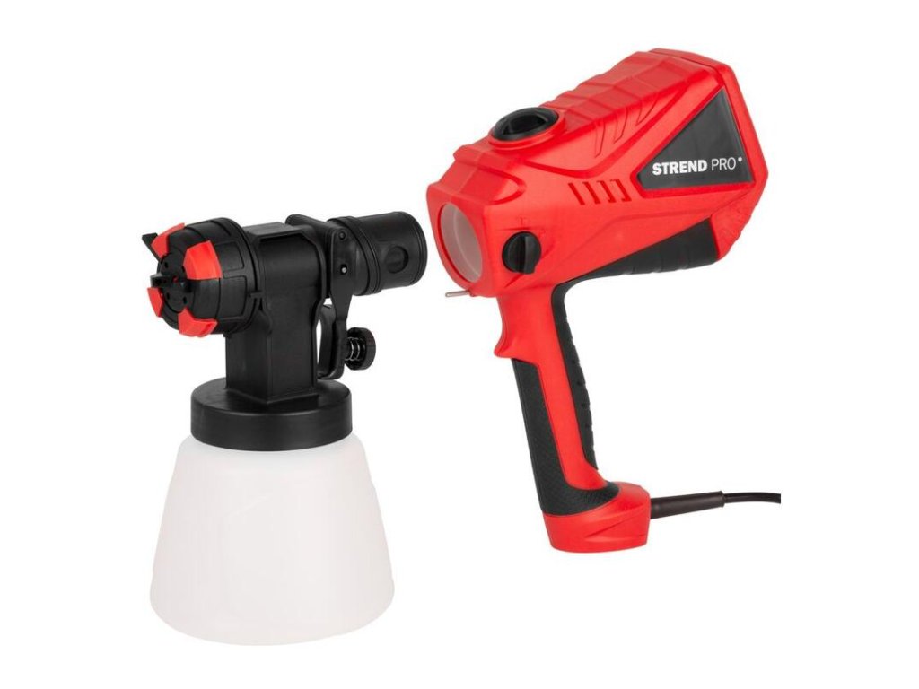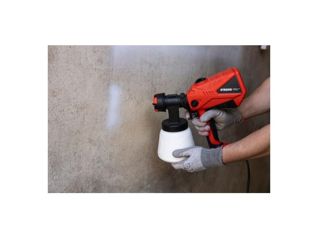 - Elektrická striekacia pištoľ Strend Pro s objemom nádoby až 1 liter a príkonom 600 W je určená na nanášanie nasledujúcich farieb a náterov: vodou riediteľné farby, základné farby, krycie laky, krycie laky na automobily, nátery na drevo, ochranné nátery na drevo, moridlá a nehorľavé látky, ktorých bod vzplanutia je nižší ako 55°C.