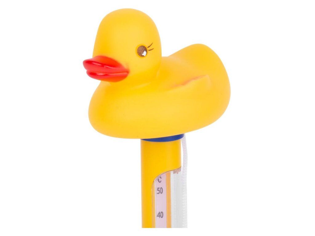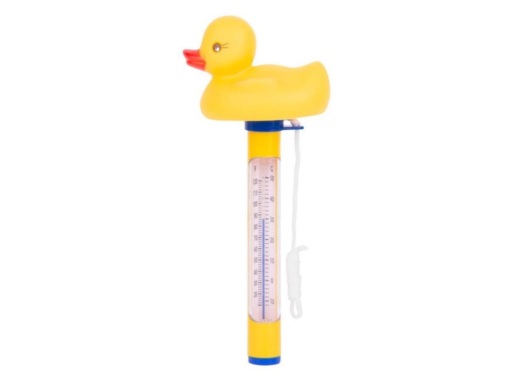 Plávajúci teplomer s kačičkou obzvláštni každý bazén a presne pomerá teplotu vody. Pripevňuje sa pomocou pásika k bazénu, aby ostal na mieste. Teplomer zobrazuje hodnoty v stupňoch Celsia aj Fahrenheita.