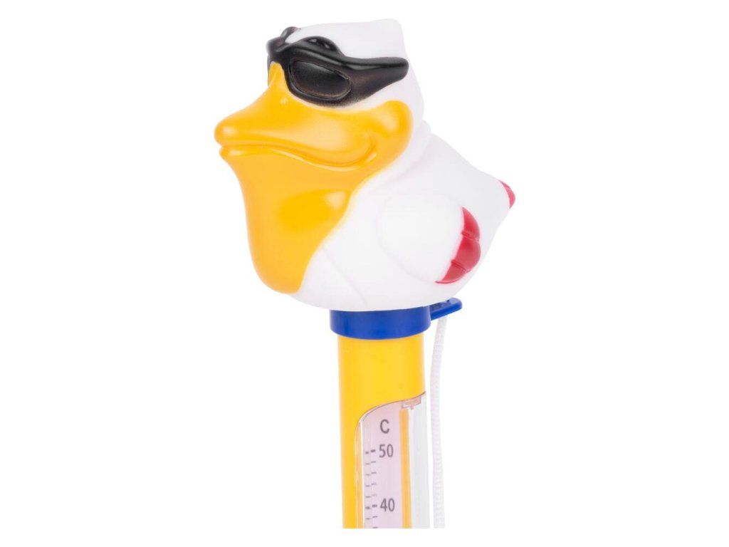 Plávajúci teplomer s pelikánom obzvláštni každý bazén a presne pomerá teplotu vody. Pripevňuje sa pomocou pásika k bazénu, aby ostal na mieste. Teplomer zobrazuje hodnoty v stupňoch Celsia aj Fahrenheita.