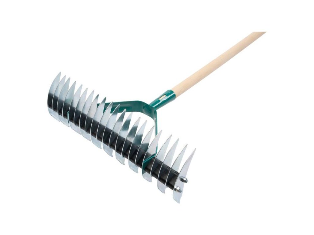 - Hrabľami prevzdušníte vrchnú vrstvu pôdy, pretrháte machy a korienky.