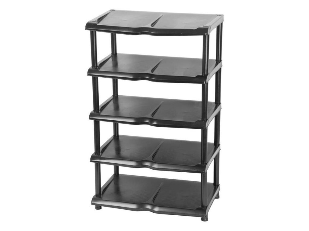STREND PRO Regál na topánky, 5 priečkový, čierny, 48x30,5x86 cm