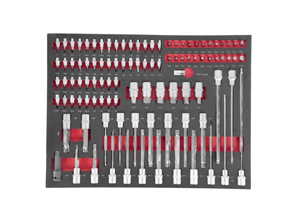 - Výplň zásuvky obsahuje 80 kusov nástrčných hlavíc a kľúčov:
