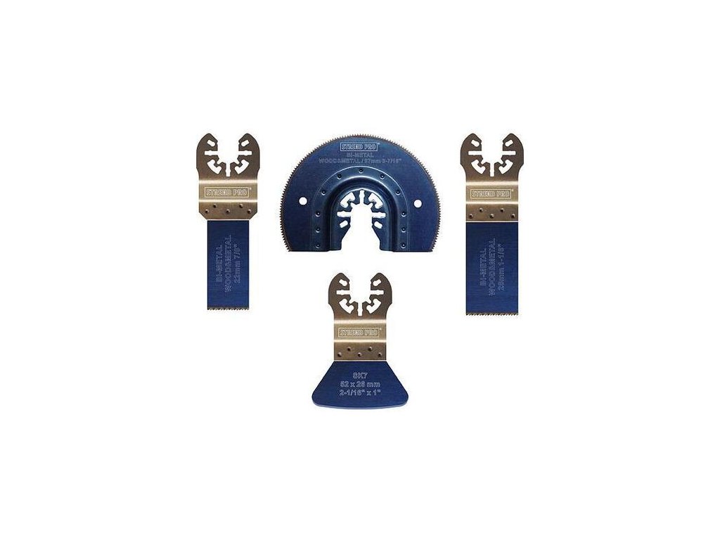 4 dielna sada nástrojov Strend Pro je vhodná pre domácich kutilov, ale aj pre profesionálnych remeselníkov. Používa sa na drevo, plast, oceľ, hliník a neželezné kovy. Je určená na multibrúsku. Pozostáva z pilových listov, polkruhu a škrabky.